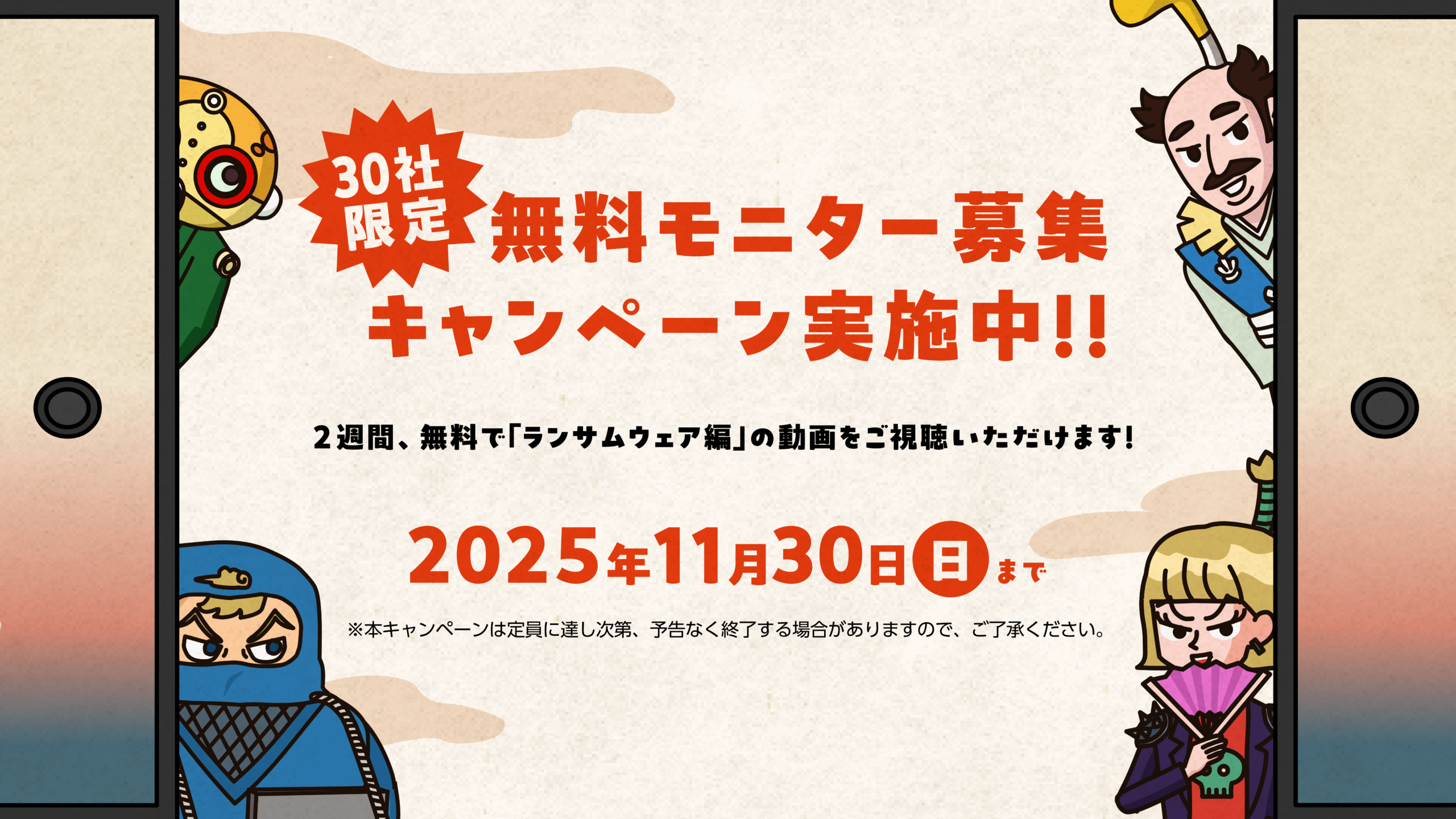 【30社限定】ランサムウェア研修動画 無料モニター募集キャンペーン